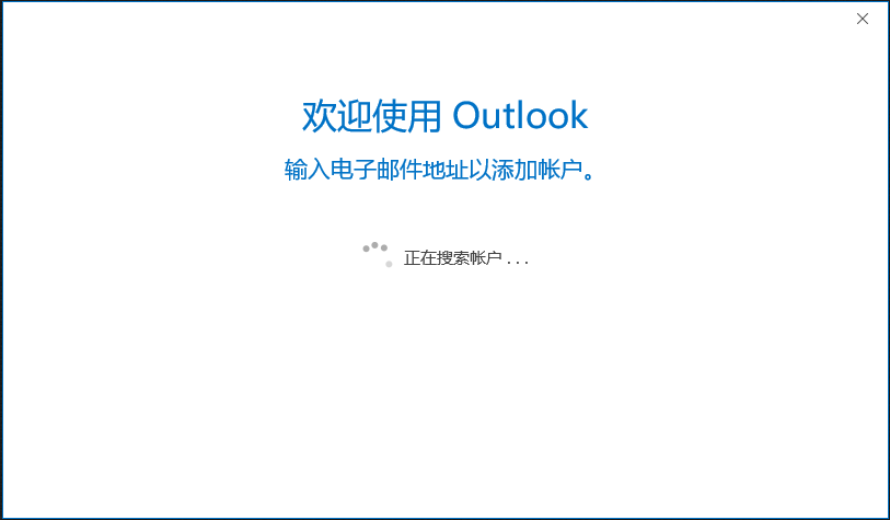 1.启动Microsoft Office Outlook 2019,首次启用会弹出如下页面,请耐心等待至账号配置页面。
